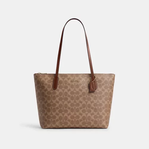 (USA Ready Stock) Coach City Tote Signature Canvas in Khaki/Saddle