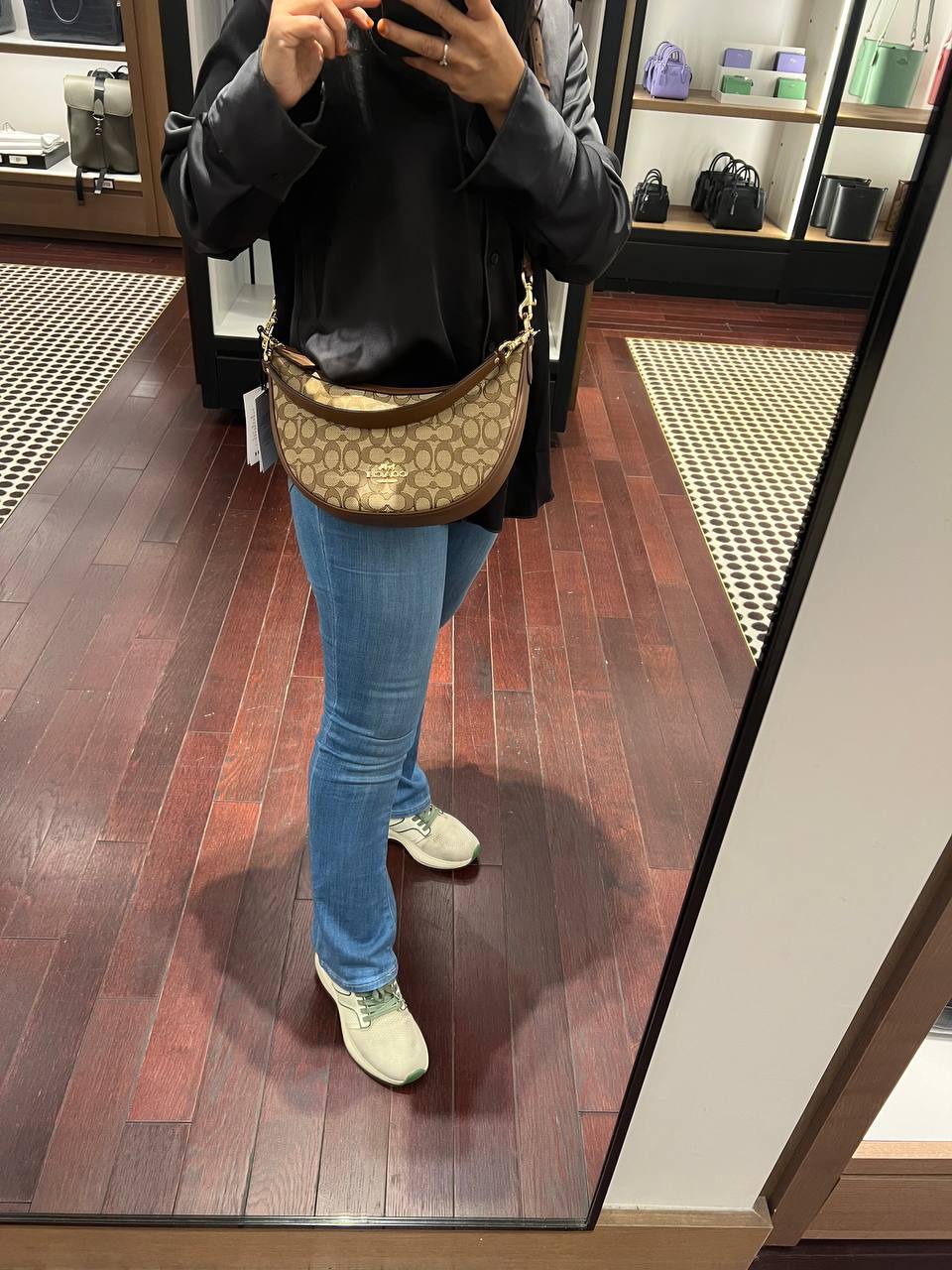 - Detachable strap for shoulder or crossbody wear with 30″ drop