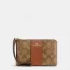 Coach Corner Zip Wristlet in Signature Canvas in Khaki/Saddle 2