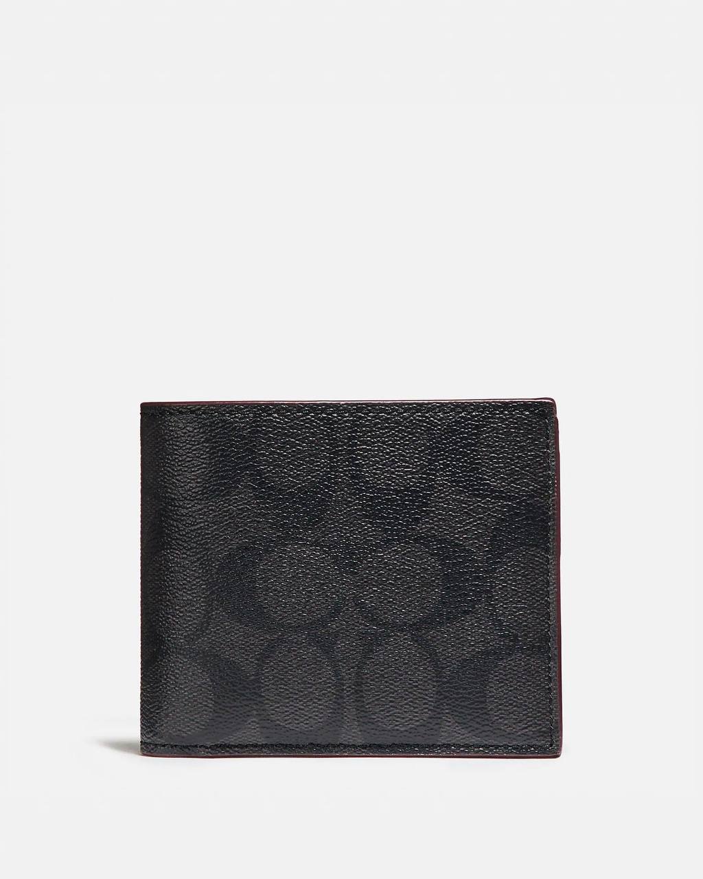 Coach for Men Compact ID Signature Wallet in Black/Black/Oxblood (F25519)