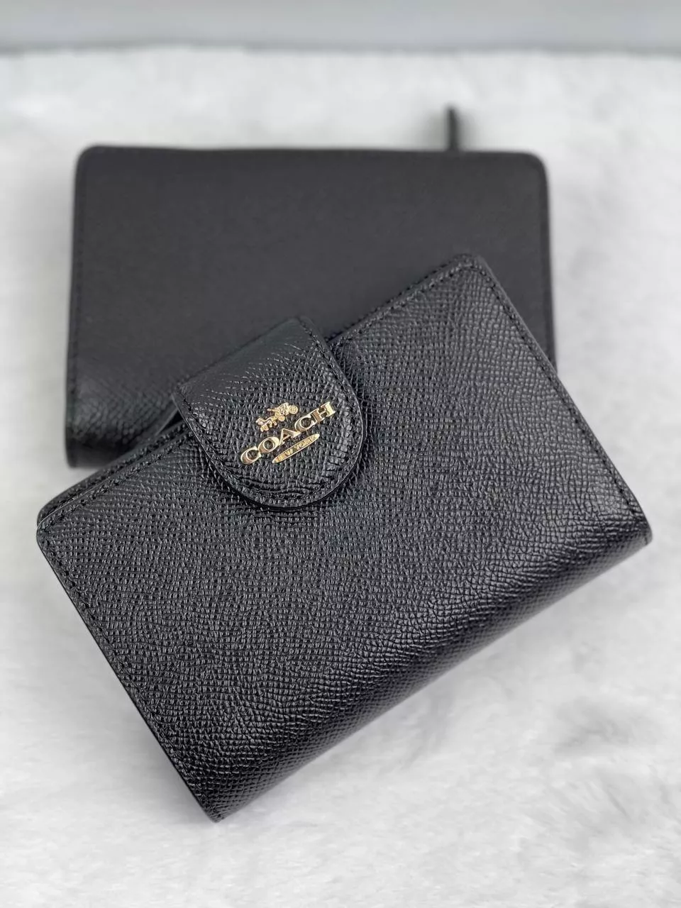 (USA Ready Stock) Coach Medium Corner Wallet in Black/Gold (6390)