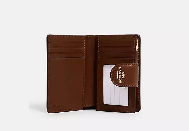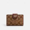 Coach Medium Corner Zip Wallet In Signature Canvas In Khaki Saddle