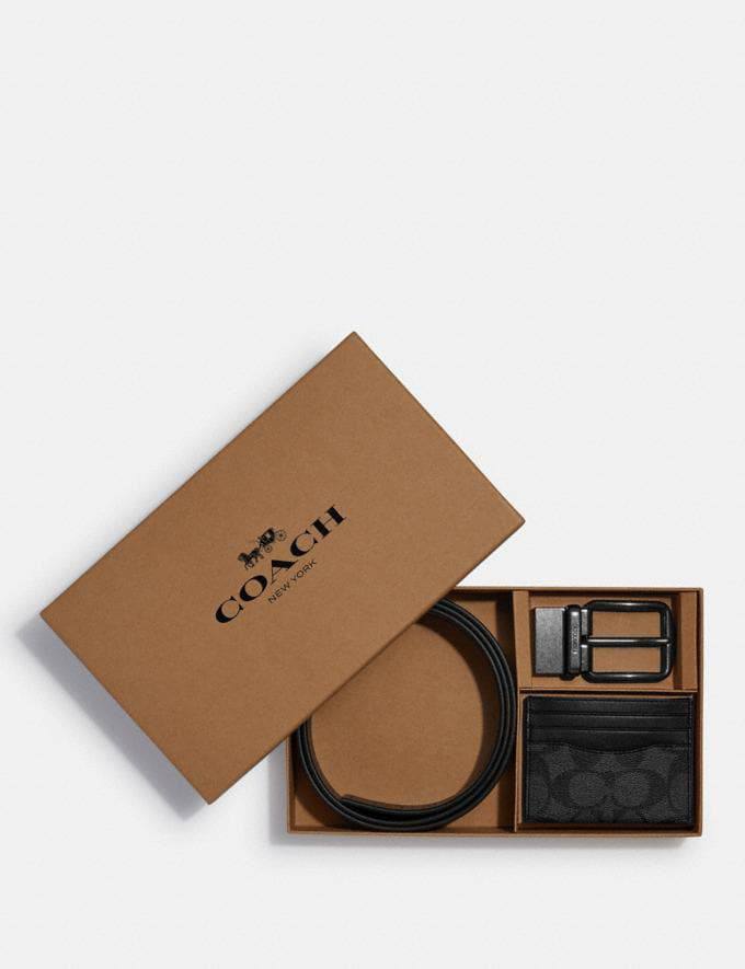 (USA Ready Stock) Coach Men Boxed Card Case And Belt Gift Set in colorblock signature charcoal black