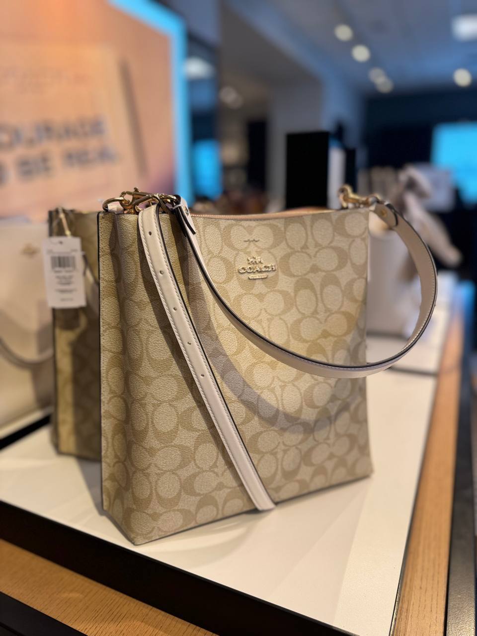 (USA Ready Stock) Coach Mollie Bucket Bag In Signature Canvas Light Khaki Chalk