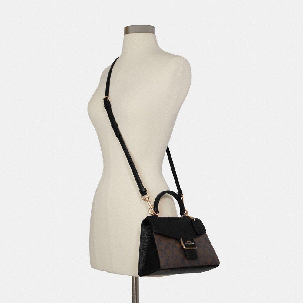 (USA Ready Stock) Coach Pepper Satchel In Signature Canvas in Brown/Black