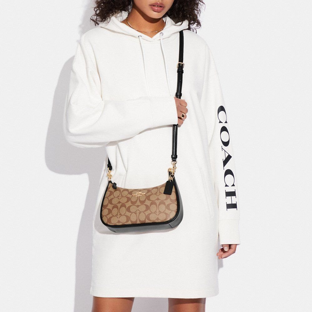 Coach Teri Shoulder Bag In Signature Canvas in Khaki/Black