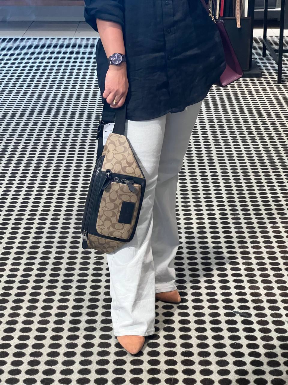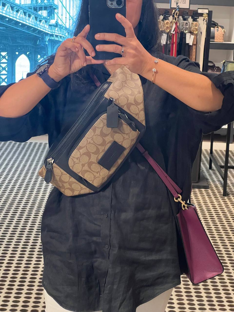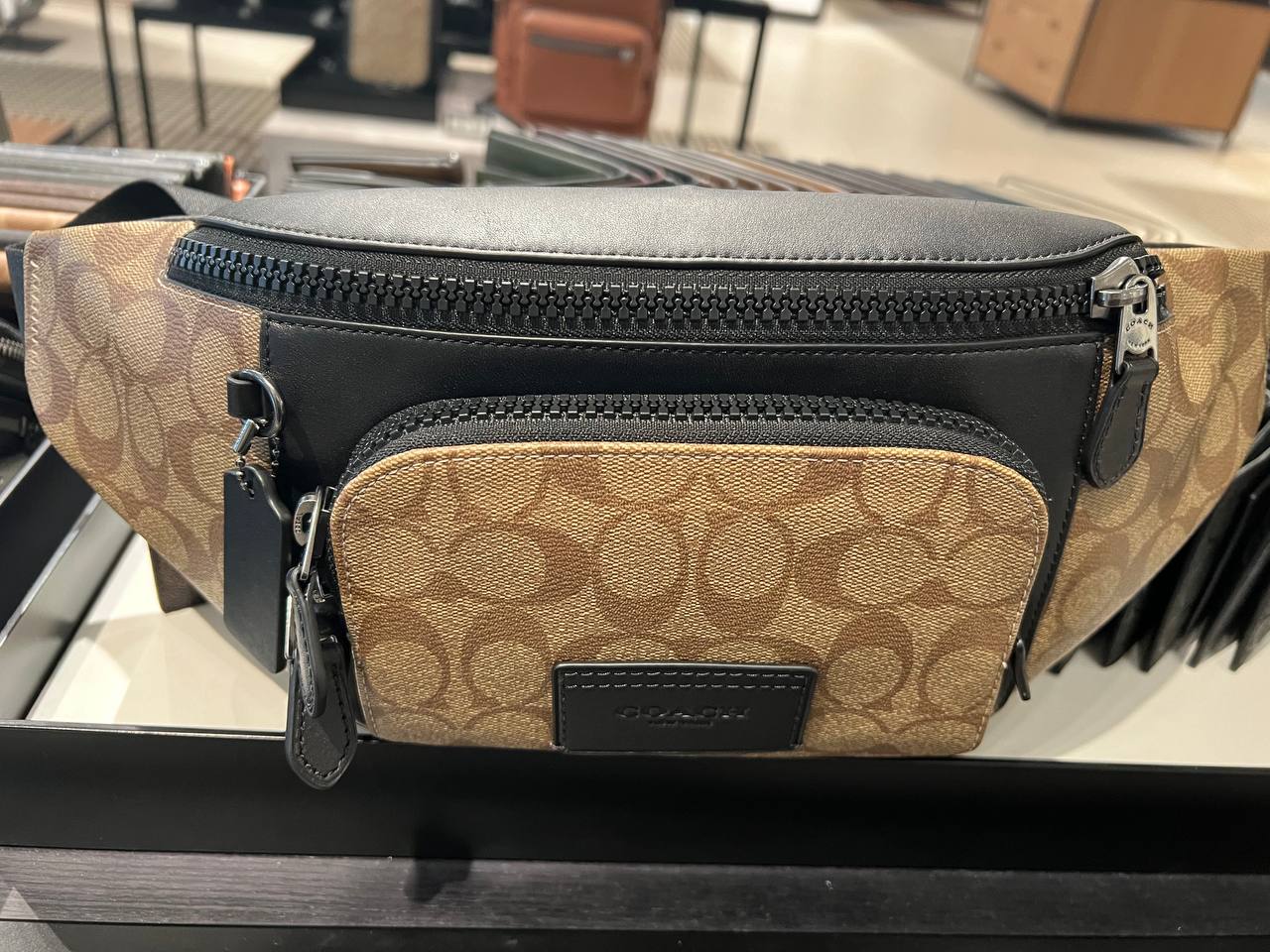 (USA Ready Stock) coach warren belt bag in signature charcoal black