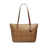 Coach Zip Top Tote Bag In Signature Canvas In Khaki/Saddle