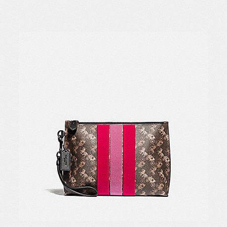 (Pre Order) Charlie Pouch With Horse And Carriage Print And Varsity Stripe 86113 Pewter/Brown Black
