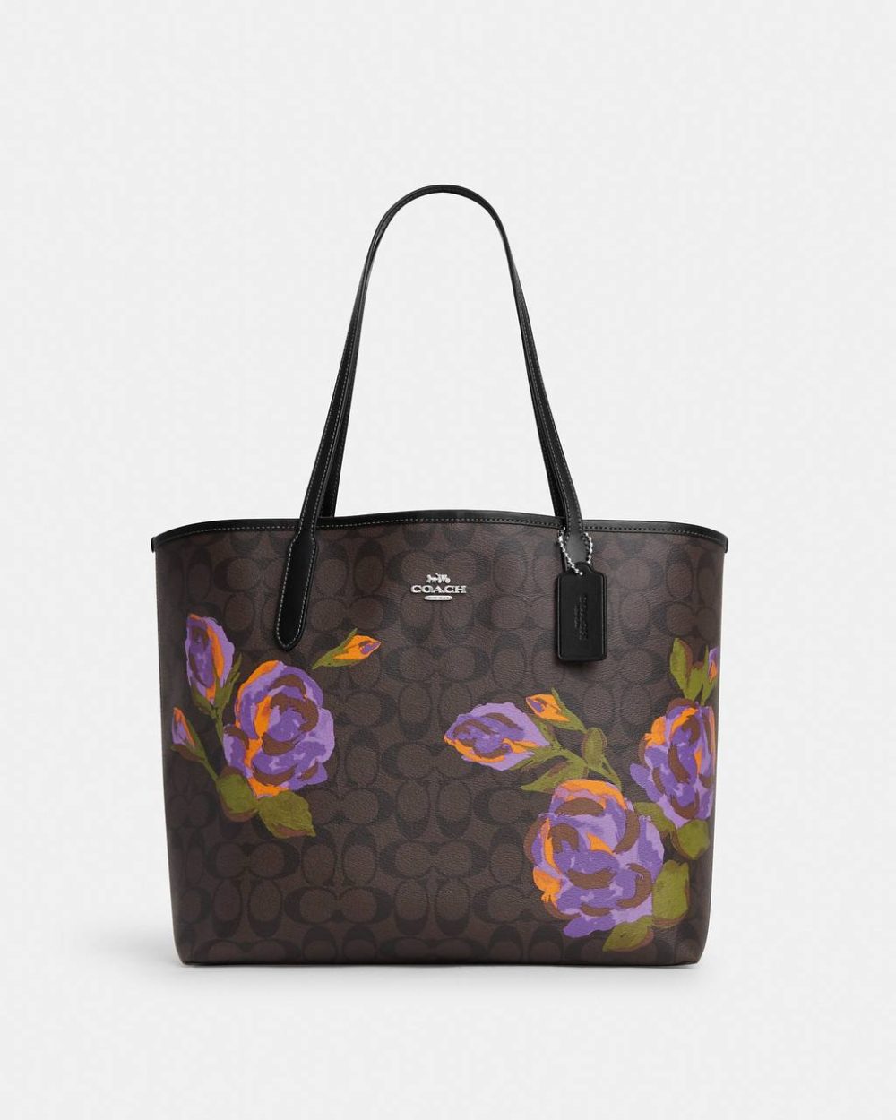 (Pre Order) Coach City Tote In Signature Canvas With Rose Print
