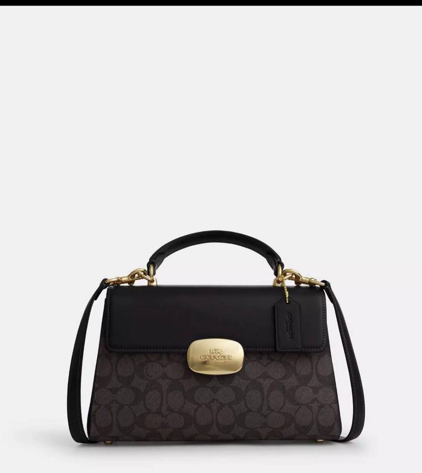 (Pre Order) Coach eliza top handle satchel in walnut black