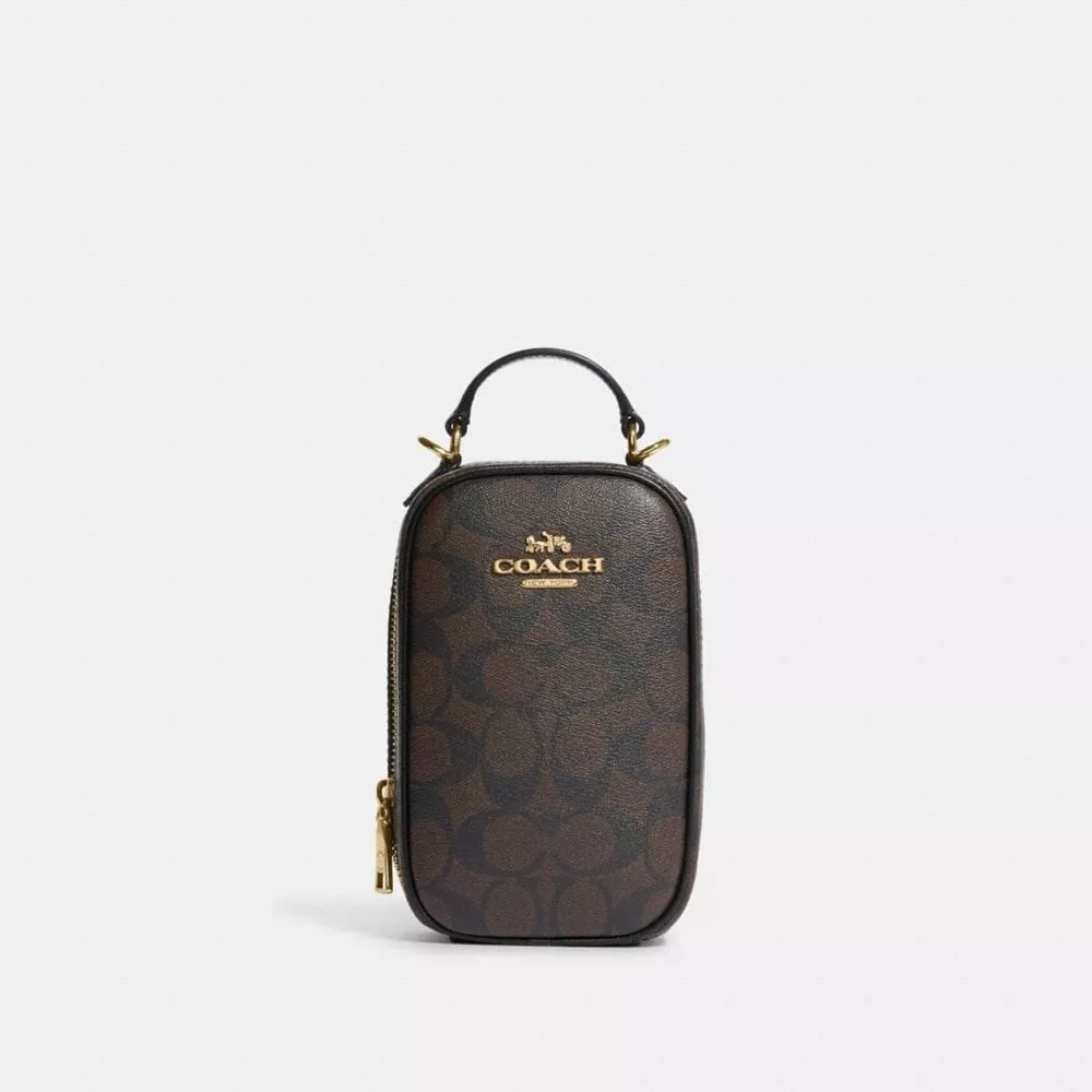 (Pre Order) Coach Eva Phone Crossbody In Signature Canvas in Brown/Black (CC872)