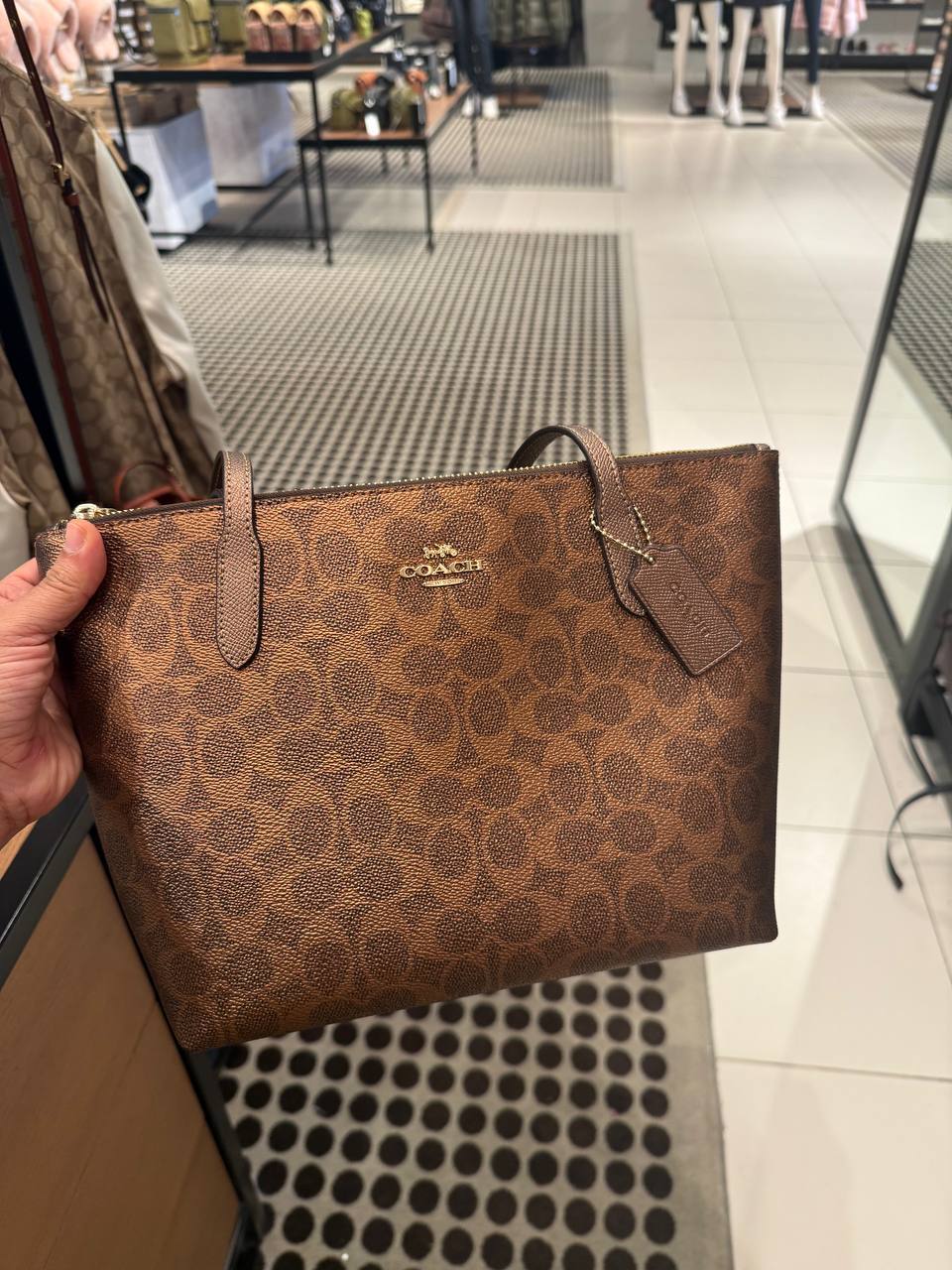 (Pre Order) coach fiona zip tote in brown copper
