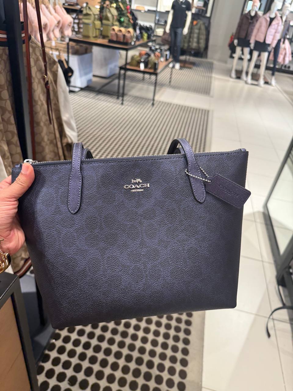 (Pre Order) coach fiona zip tote in metallic blue