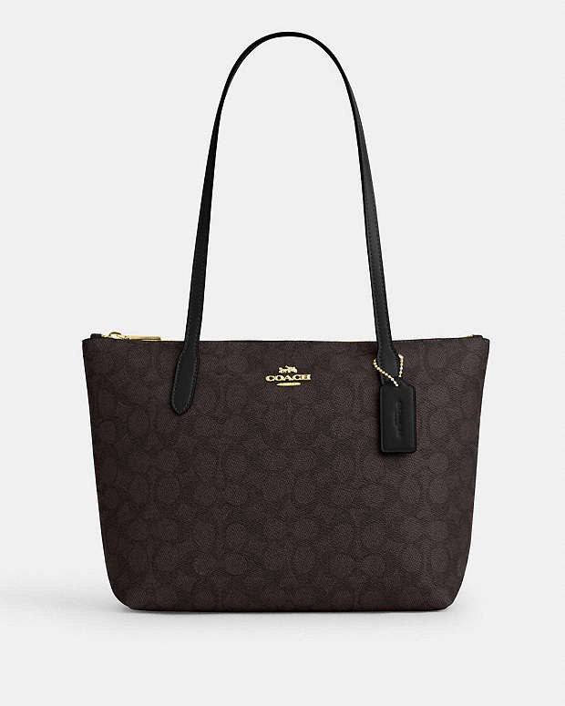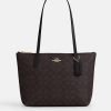 (Pre Order) Coach Fiona Zip Tote In Signature Walnut Black