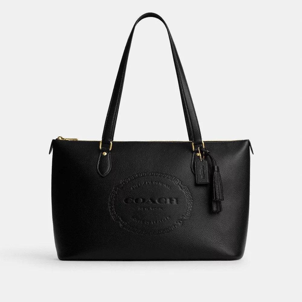 (Pre Order) Coach Gallery Tote With Coach Heritage in Black (CM086)