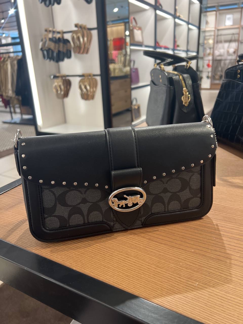 (Pre Order) Coach Georgie Shoulder Bag Signature Rivets Charcoal Black