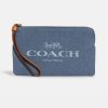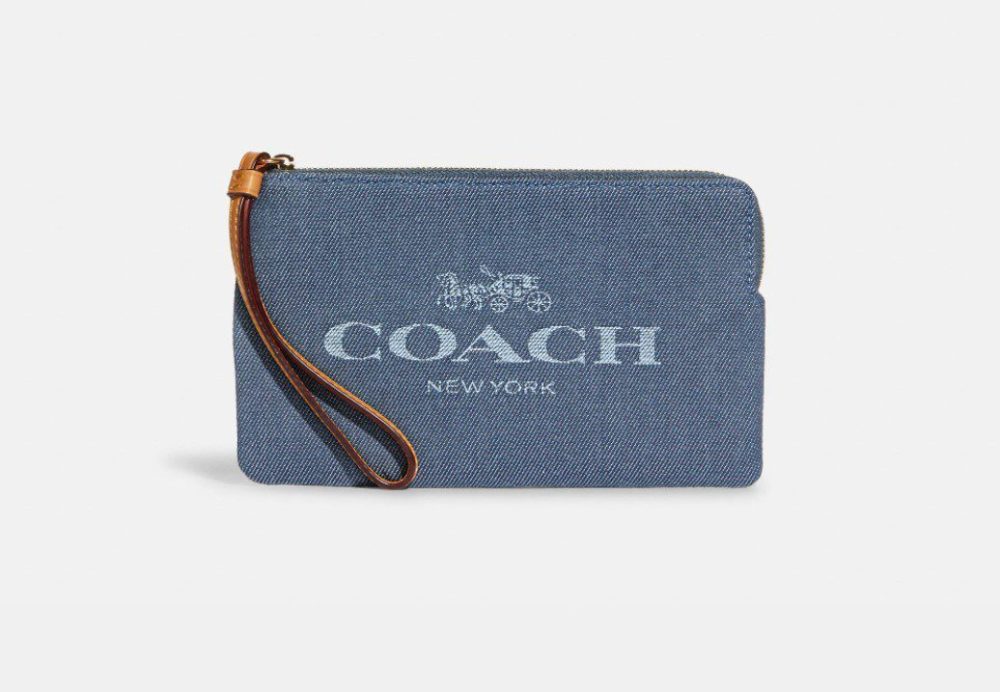 (Pre Order) coach Large Corner Zip Wristlet gold denim