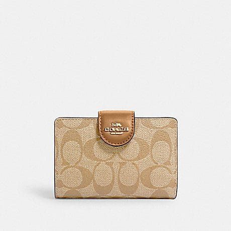 (Pre Order) coach medium corner zip wallet in light khaki light saddle