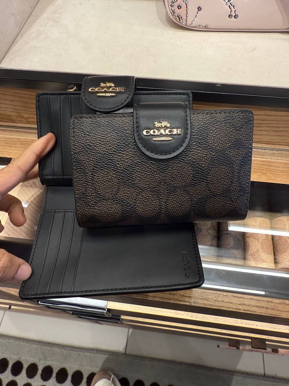 (Pre Order) Coach medium corner zip wallet in walnut black