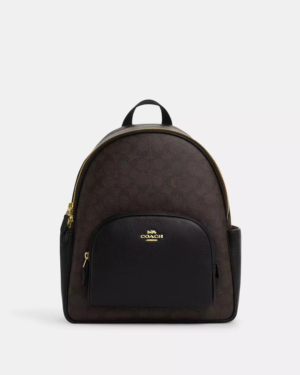 (Pre Order) coach medium court backpack in signature walnut black