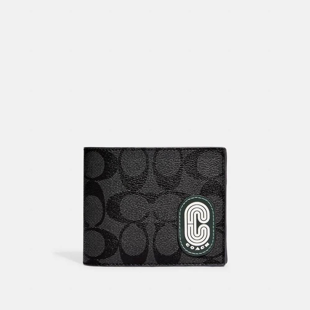 (Pre Order) Coach Men 3 In 1 Wallet In Colorblock Signature Canvas With Coach Patch in Charcoal/Amazon Green (C8297)