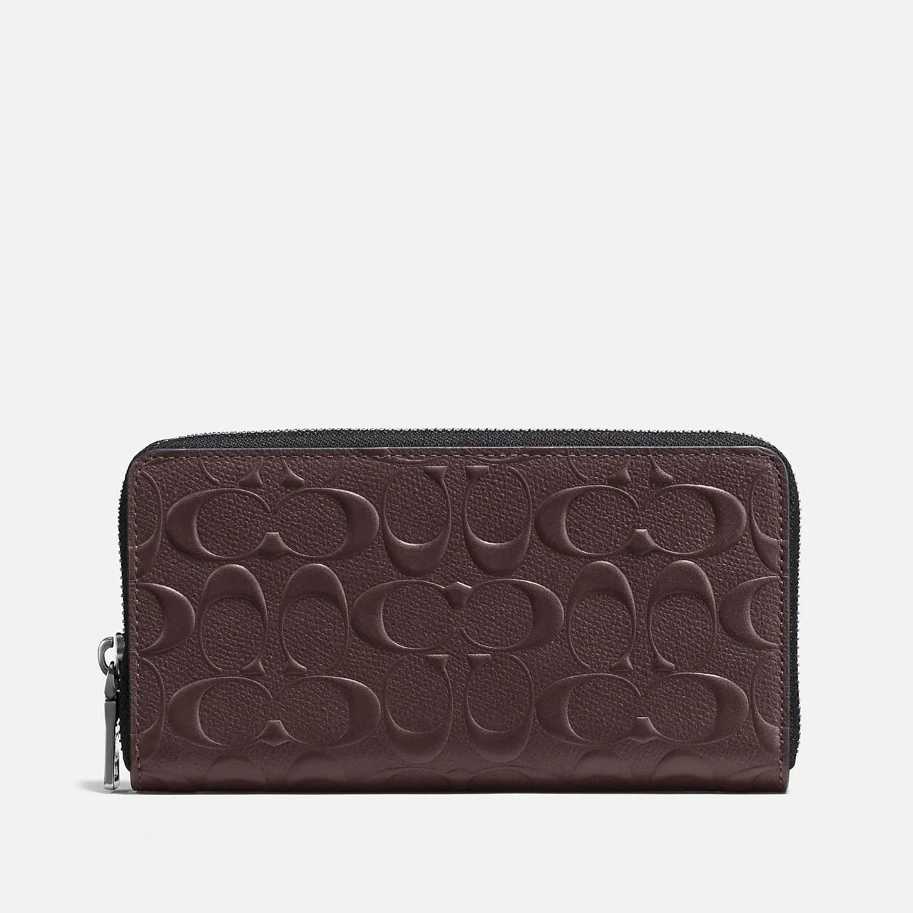(Pre Order) Coach Mens Accordion Zip Around Signature Crossgrain Leather Wallet in Mahogany (F58113)