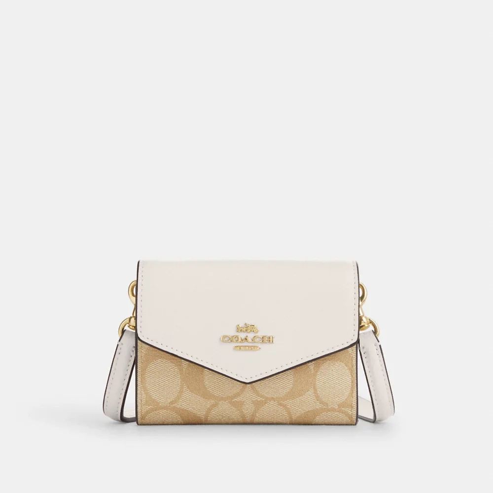 (Pre Order) COACH MINI ENVELOPE WALLET WITH STRAP IN SIGNATURE CANVAS IN LIGHT KHAKI CHALK (CU172)