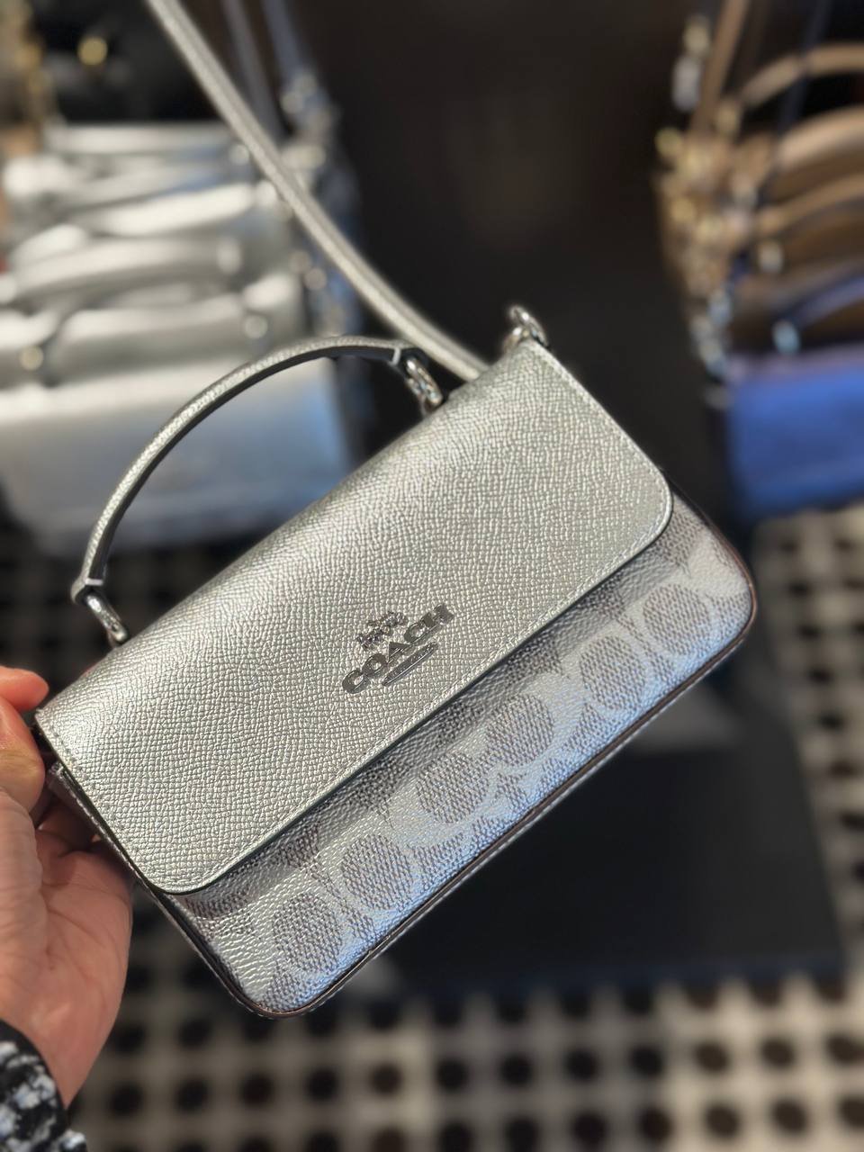 (Pre Order) Coach mini josie top handle satchel in metallic silver
