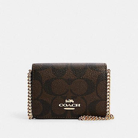 (Pre Order) Coach mini wallet on a chain crossbody in signature brown black