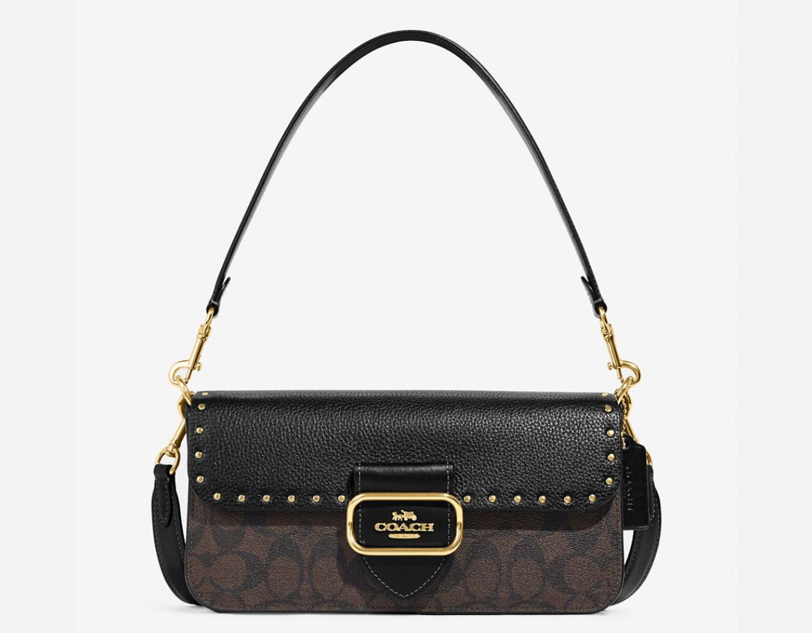 (Pre Order) Coach Morgan Shoulder Bag In Colorblock Signature Canvas With Rivets in Brown Black Multi (CE563)