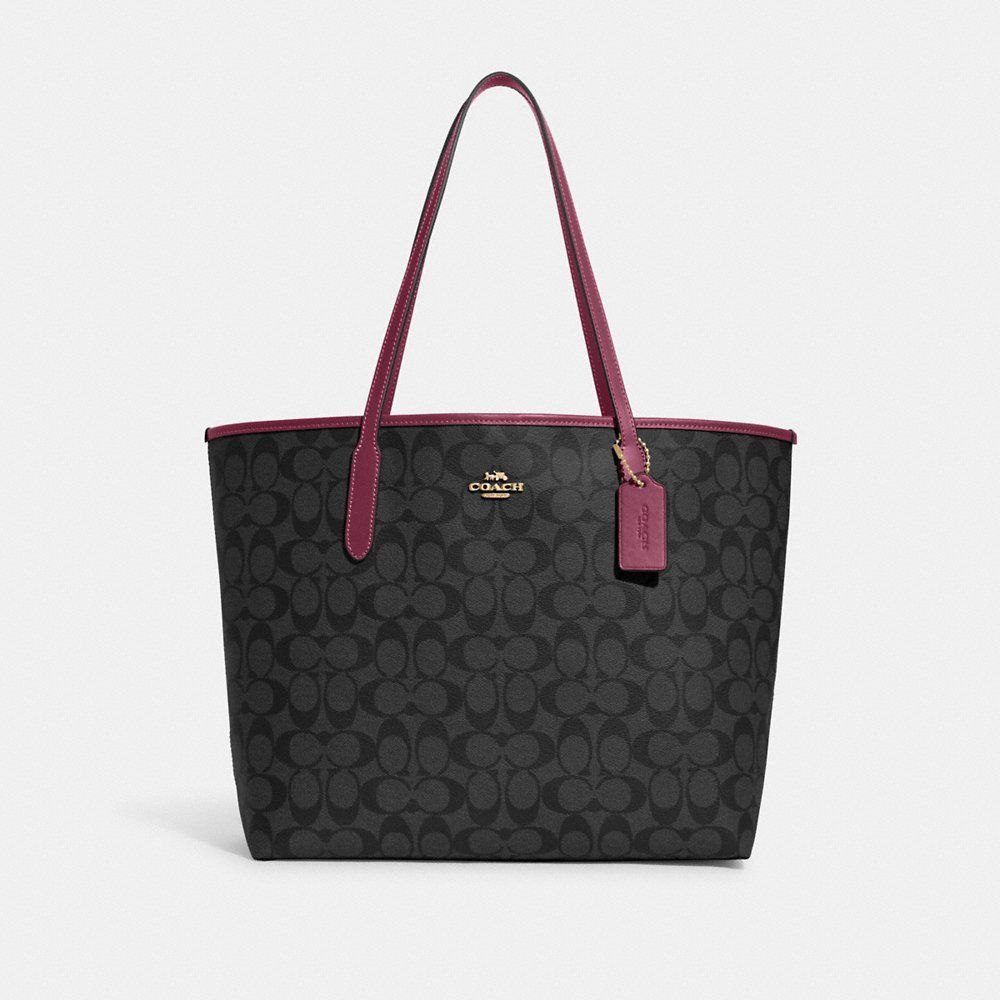 (Pre Order) Coach Signature Open City Tote in Graphite/Black Cherry