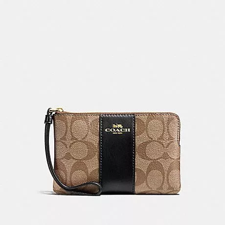 Be the first to review “(Pre Order) coach small corner zip wristlet in khaki black”