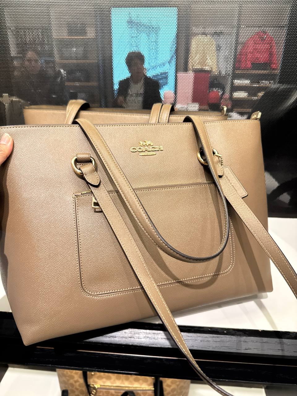 (Pre Order) Coach Fiona Zip Tote In Signature Walnut Black