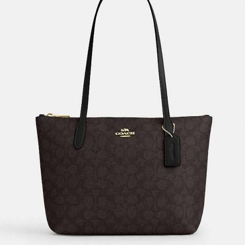 (Pre Order) Coach Fiona Zip Tote In Signature Walnut Black