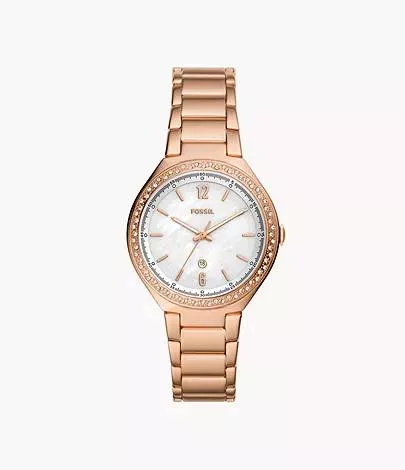 (Pre Order) Fossil Ashtyn Three-Hand Date Rose Gold-Tone Stainless Steel Watch BQ3841
