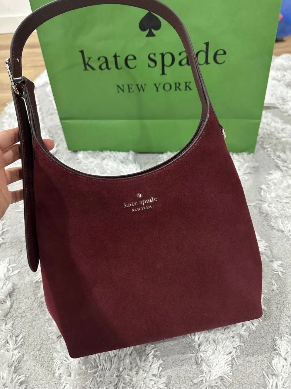 (Pre Order) Kate Spade 454 small shoulder in suede dark merlot