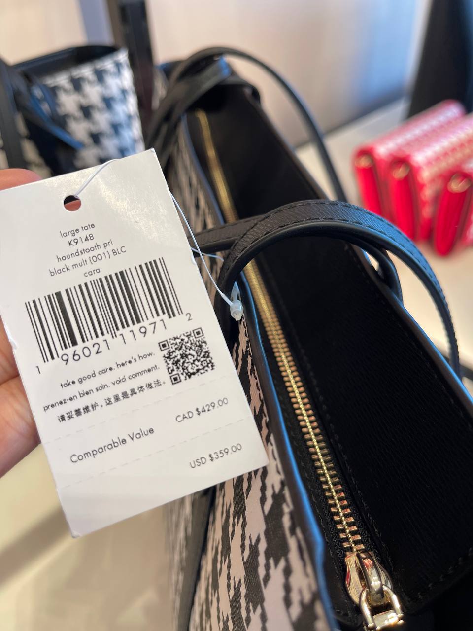 (Pre Order) Kate Spade Cara Tote in Houndstooth