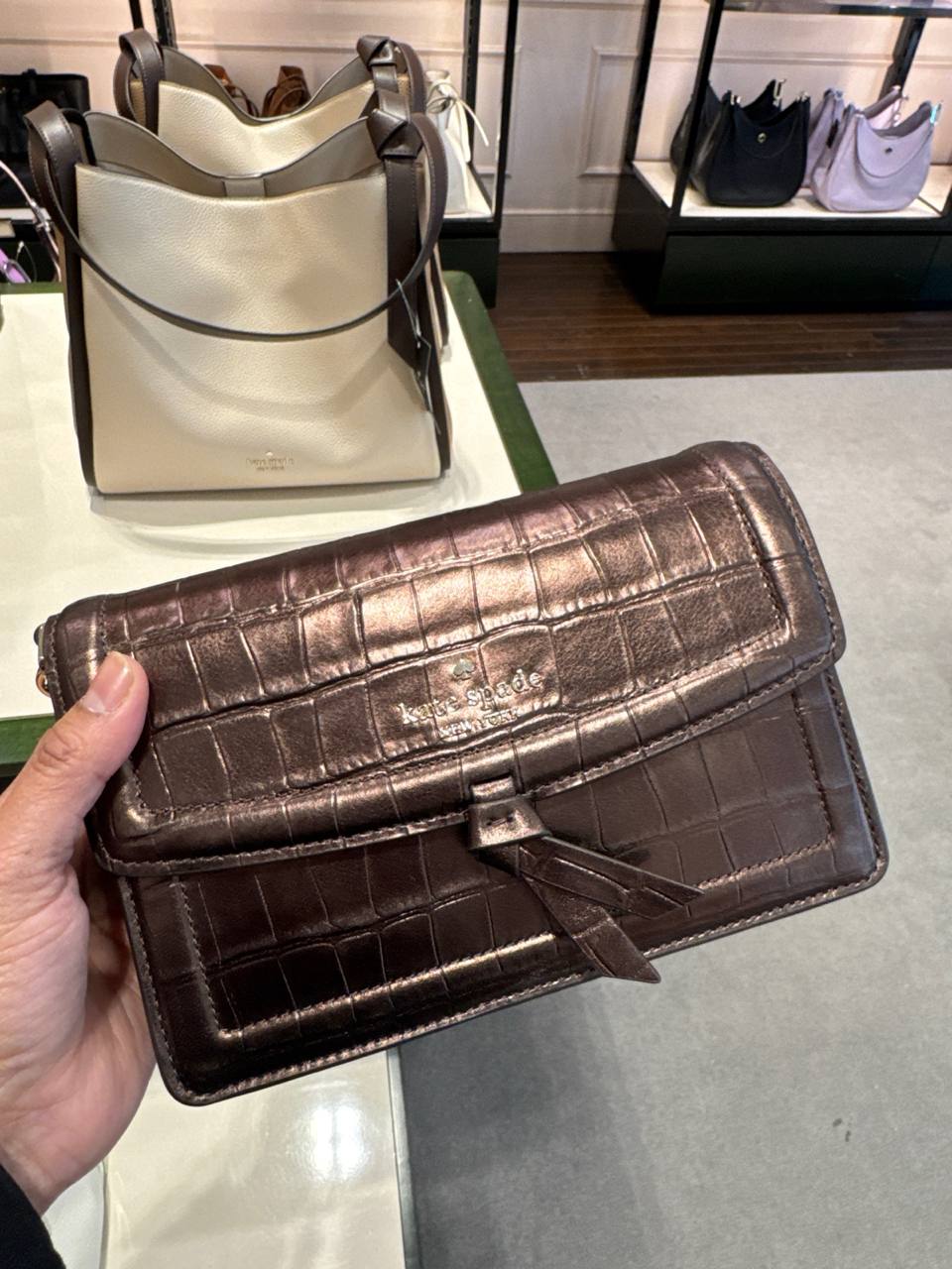 (Pre Order) Kate Spade knott crossbody in metallic hot fudge