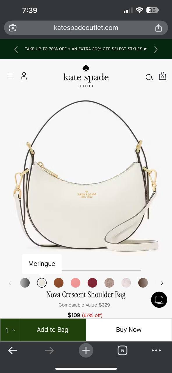 Be the first to review “(Pre Order) Kate Spade nova crescent shoulder bag in meringue”