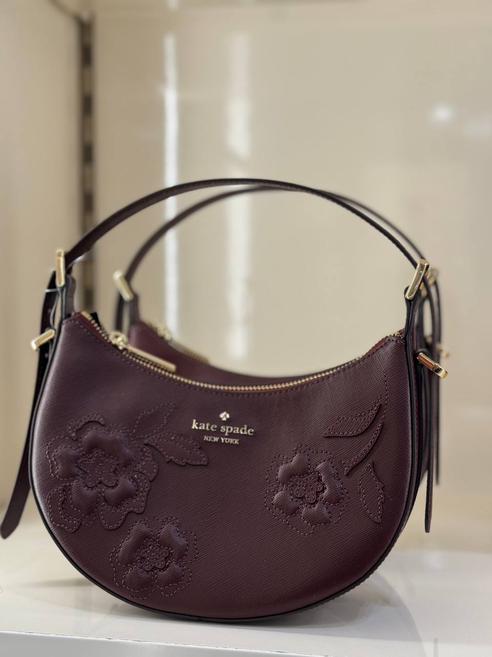 (Pre Order) Kate Spade nova small crescent shoulder bag in dark merlot
