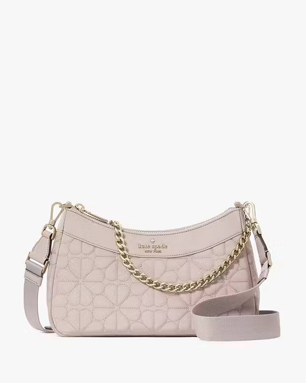 (Pre Order) Kate Spade quilted fabric convertible crossbody in signature flower cozy grey