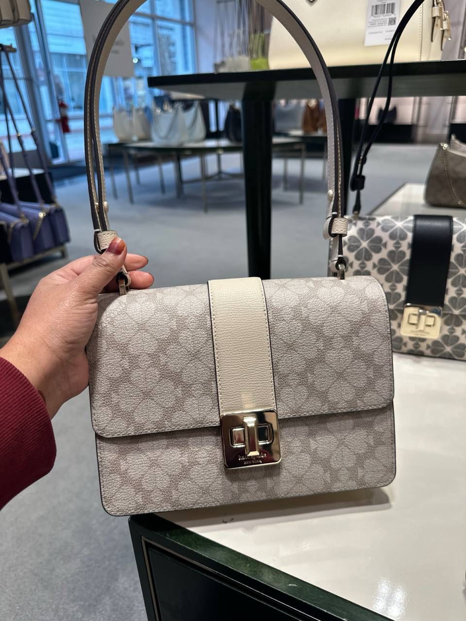 (Pre Order) Kate Spade small flap shoulder in signature flower dark beige