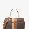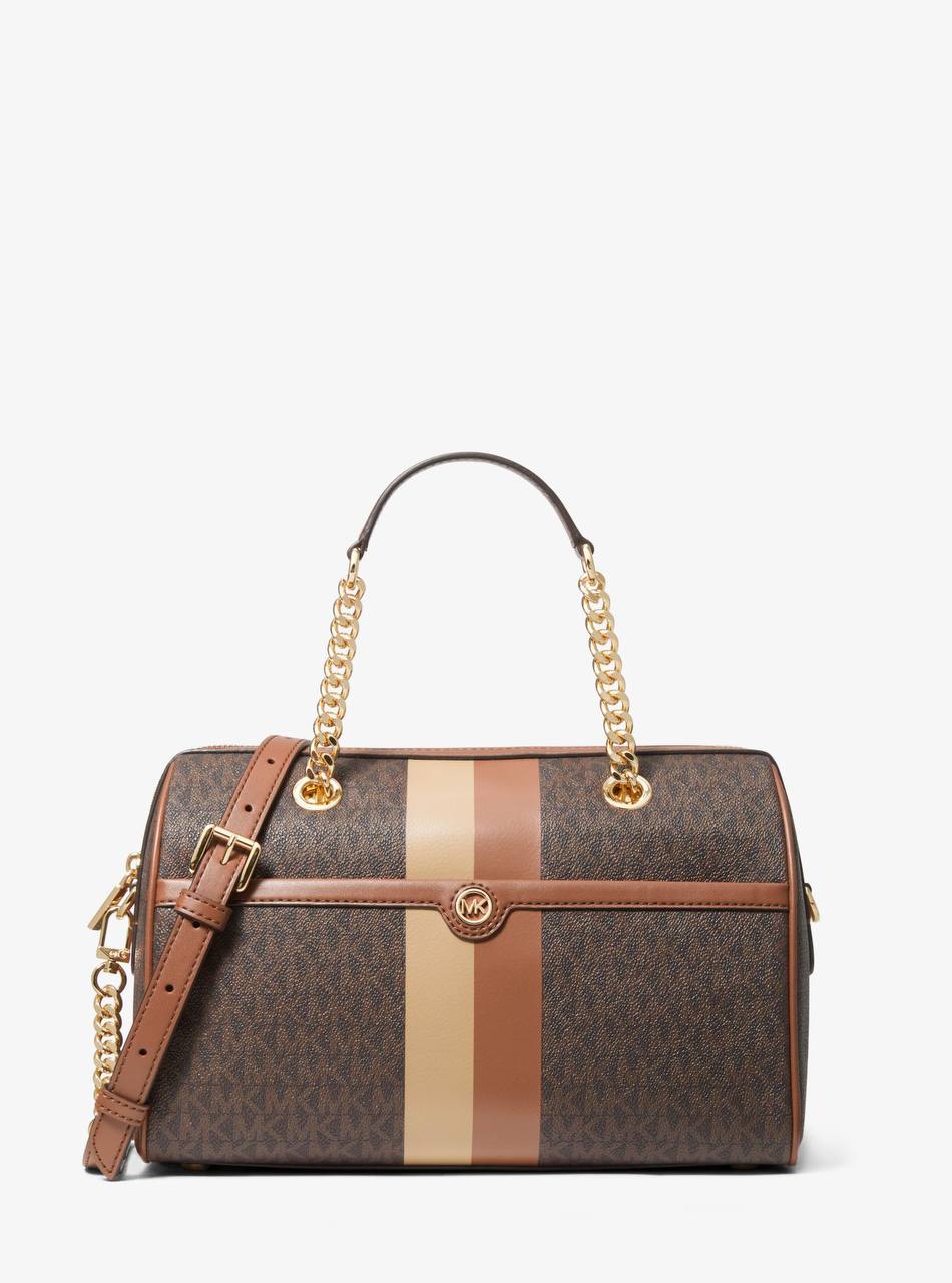 (Pre Order) Michael Kors blaire medium logo stripe satchel signature brown