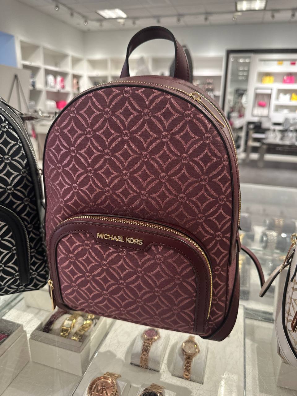 Michael Kors Jaycee Medium Backpack in Signature Jacquard Oxblood Multi