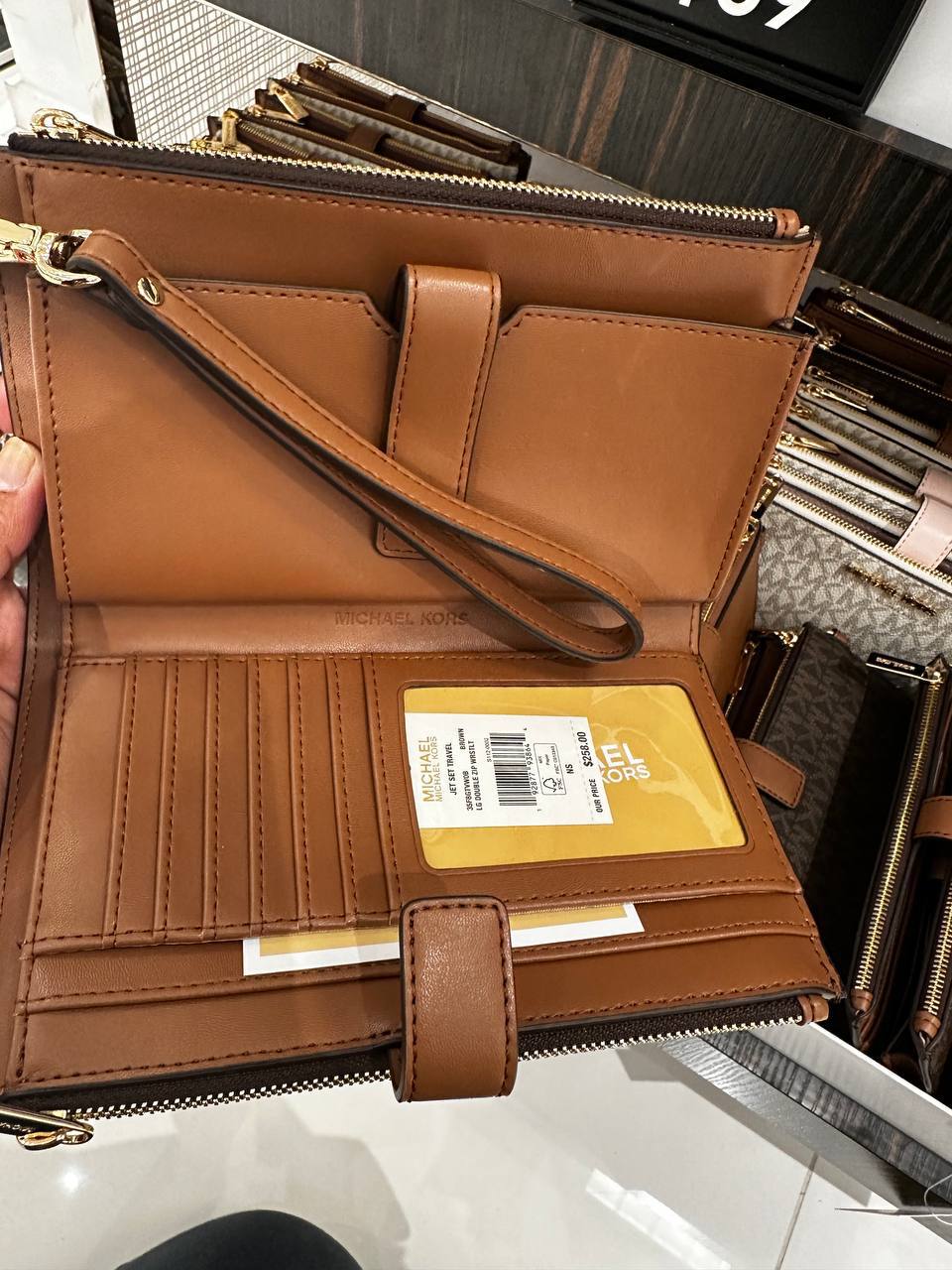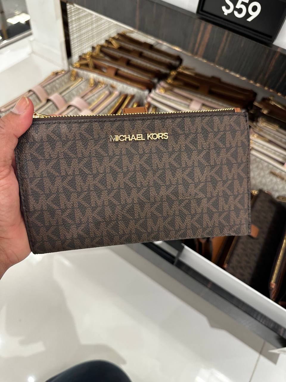 Be the first to review “(Pre Order) Michael Kors jet set travel large double zip wristlet in signature brown”