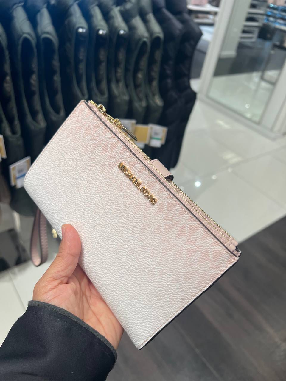 (Pre Order) Michael Kors jst large double zip wristlet in signature ombre blush