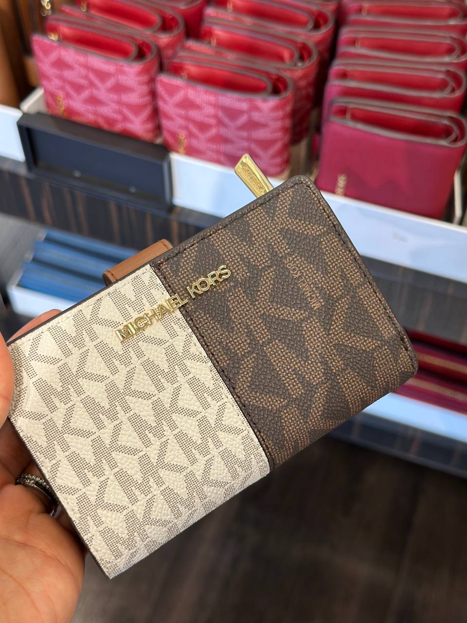 (Pre Order) Michael Kors medium corner zip wallet in signature colorblock brown vanilla