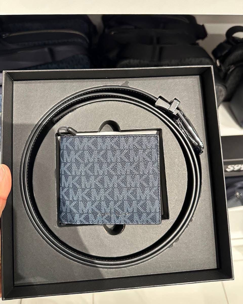 (Pre Order) Michael Kors men wallet with belt gift set in signature navy
