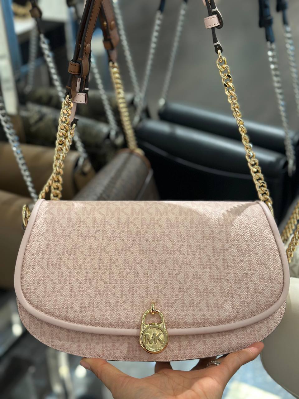 (Pre Order) michael kors mila medium ew sling messenger in signature powder blush (35t5gimm8v)